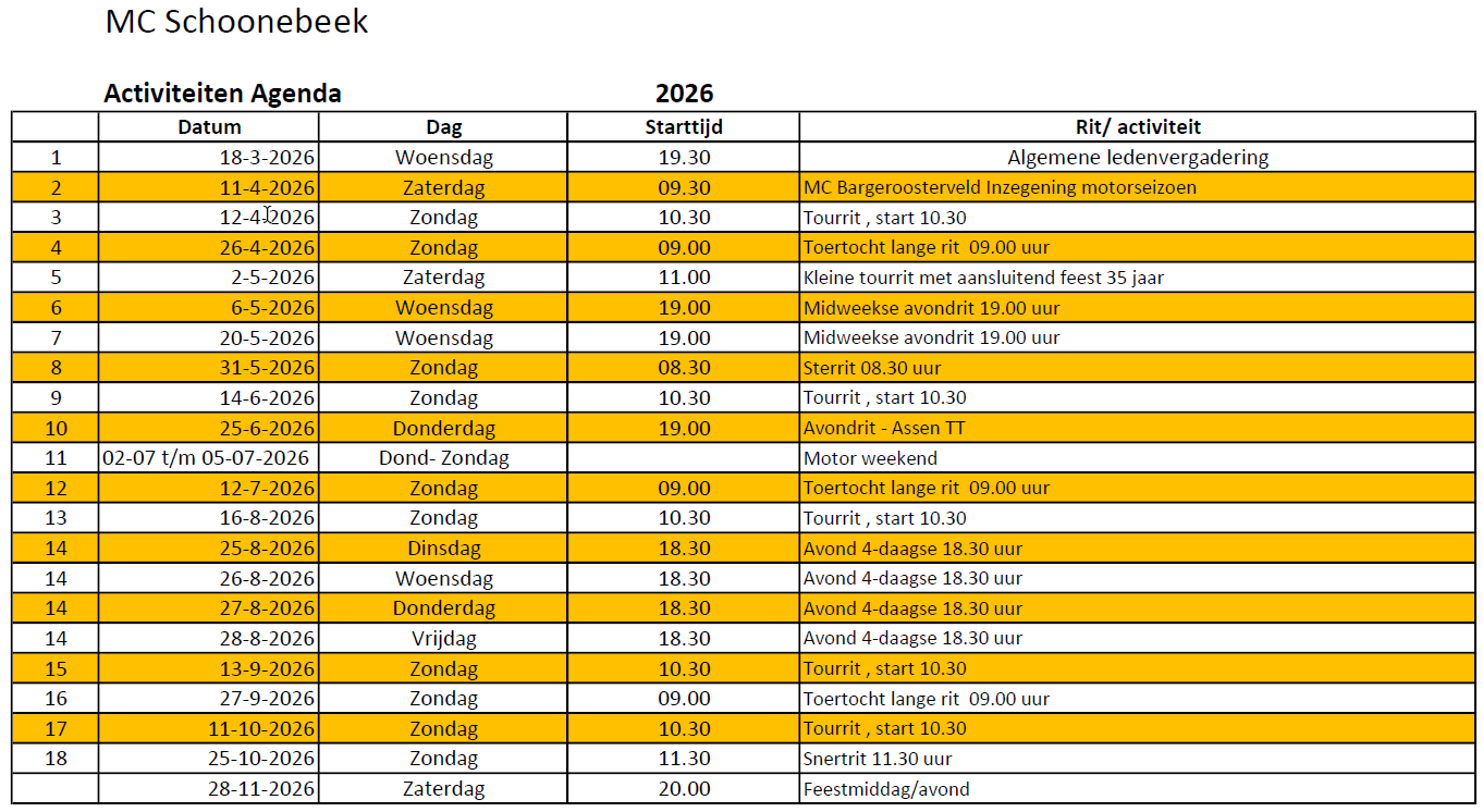 Onderaan de pagina kun je de volledige agenda downloaden en inzien. Voor het downloaden van de route kies je de pagina met motorroutes.